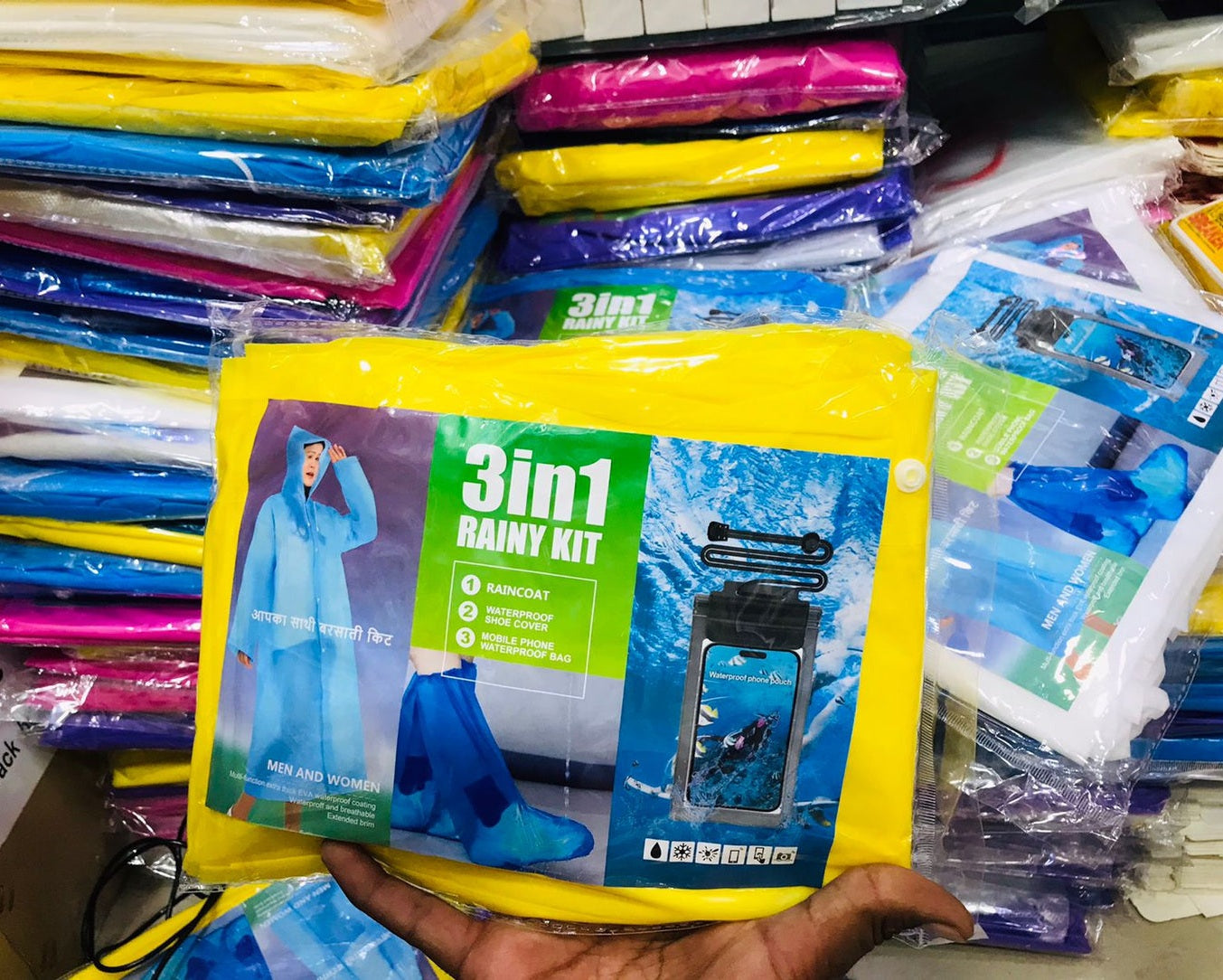 Rain Coat Kit Waterproof 3 in 1/ Rain Coat/ Mobile Pouch/Shoes Cover